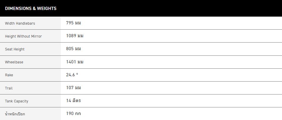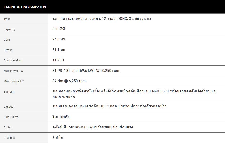 ข้อมูลด้านเทคนิค : TIGER SPORT 660